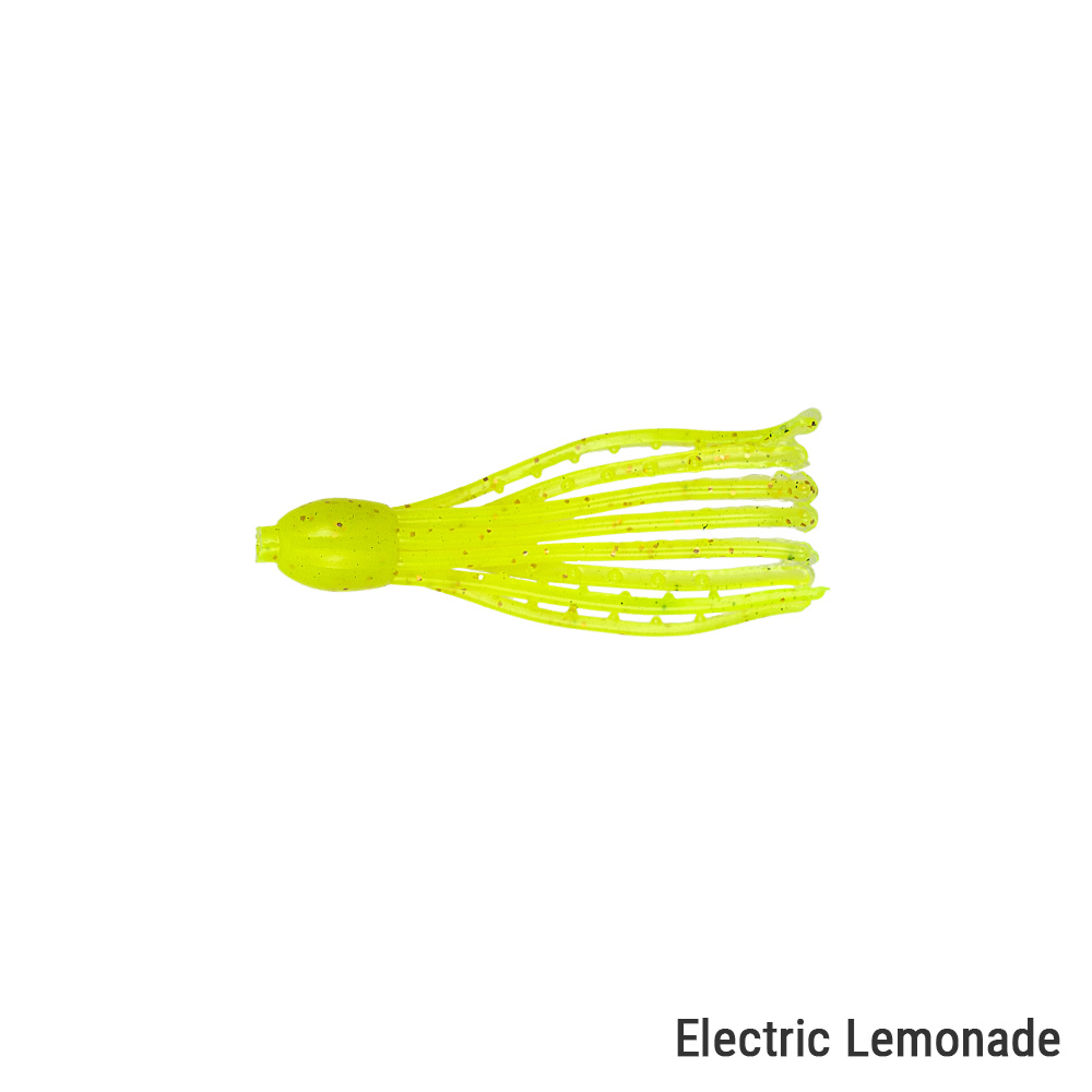 Amazing action, ease of use and versatility make these 3.5” and 4.5” octopus baits a great choice. Hollow heads aid in rigging. The floating material and softness generate a natural rhythmic flowing action which get fish on. Durability of these baits is unsurpassed. Great for a variety of saltwater species as well as perch, walleye and bass.